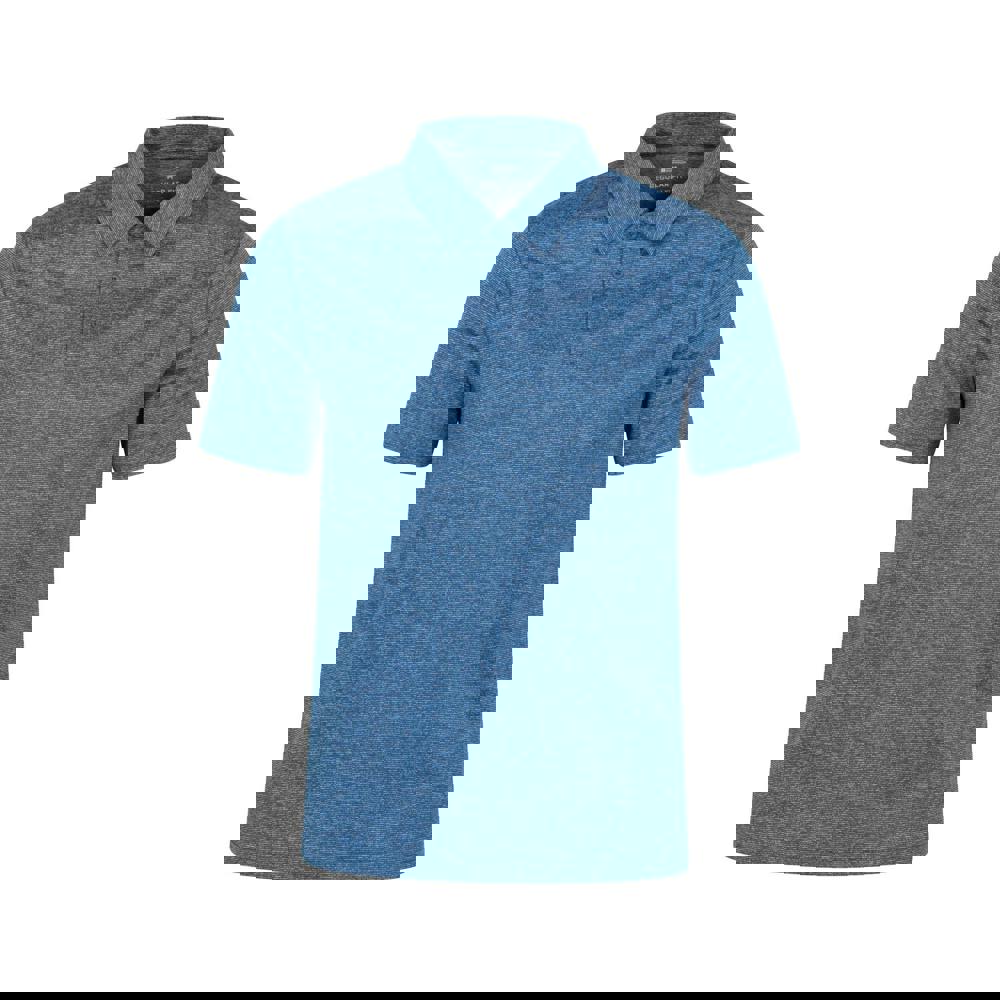 The Mountain Warehouse Agra Stripe polo shirt comes in blue with a striped finish and logo detail. It has short sleeves and a turn down collar, finished with a three button placket and button fastening for a clean, classic look.