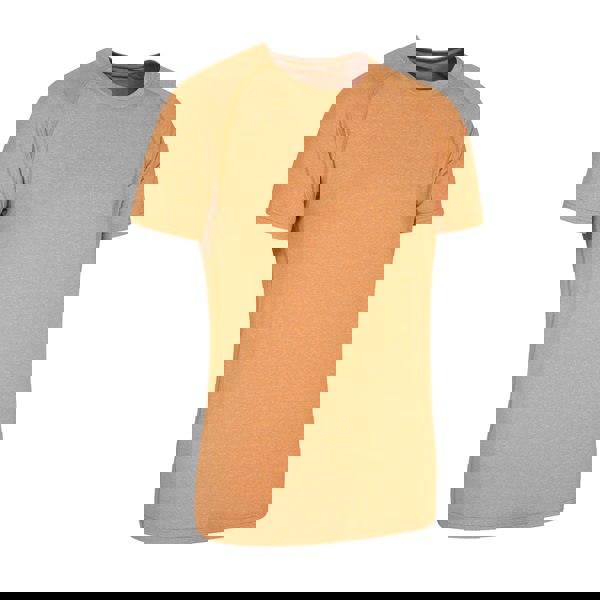 Mountain Warehouse Agra Striped IsoCool T-Shirt in mustard. Made from a nylon, polyester and elastane blend, this short-sleeved style is finished with a crew neckline. The design combines stripes with a logo detail for a clean, casual look.