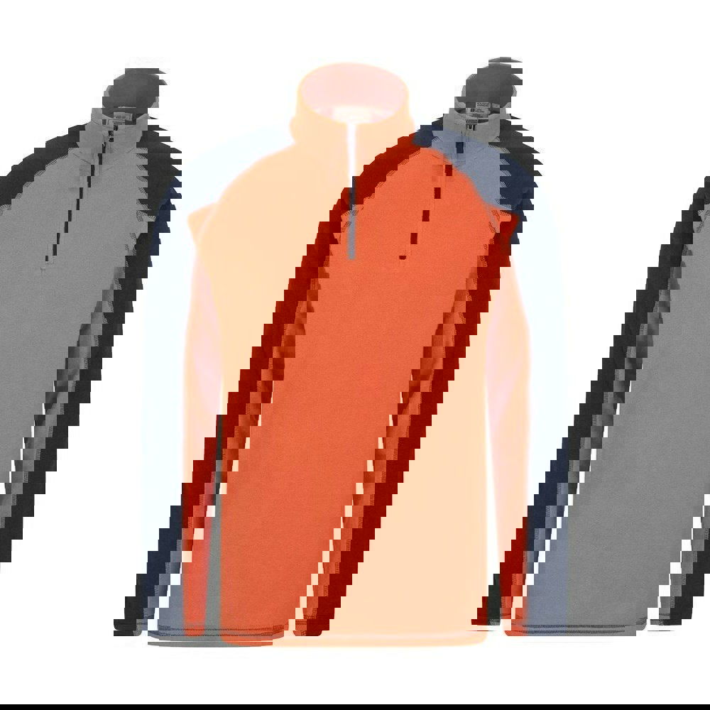 This microfleece top is made from 100% polyester and finished in orange with plain panels and contrast sleeves. It has long sleeves and a standing collar, with a half zip opening for pull-on wear. Practical details include an anti-pilling finish, a branded zip pull and a name label.