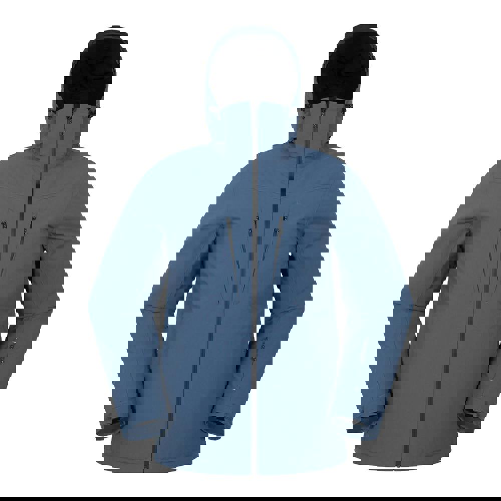 Built with breathable, waterproof fabric technology, it has a waterproof rating of 5000mm and breathability of 3000g/m²/24hrs. Storage is arranged across multiple zipped pockets, including two side pockets, two chest pockets, an inside pocket and a sleeve pocket. The hood adjusts with a toggle for a secure fit.