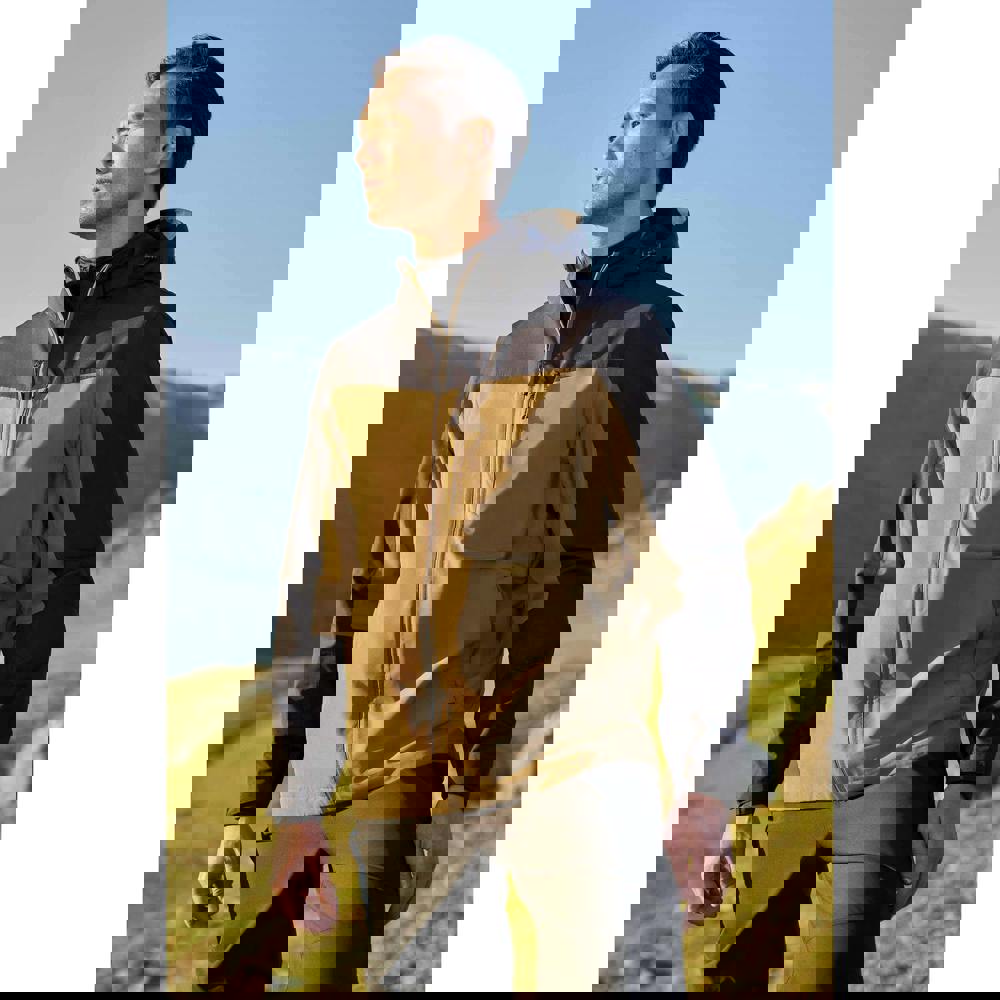 Built for wet-weather wear, this colour block jacket combines a hooded neckline with long sleeves and a full zip fastening. It is made from 100% polyester and uses IsoDry fabric technology with breathable and waterproof properties. A mesh lining sits inside, while underarm zips add extra ventilation options.
