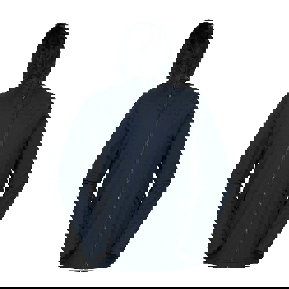 A full zip fastening keeps the front clean and practical, while two side pockets with zip closures provide secure storage for essentials. Finished with a logo detail, this navy jacket is made with breathable fabric technology and a durable water repellent finish.