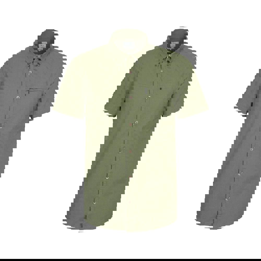 This short-sleeved shirt is made from slub fabric with a textured finish and a turn down collar. It fastens with a button front and includes a 7 button placket for a clean, structured look. A mesh lining adds an extra layer, while the lightweight, breathable fabric technology supports comfortable wear.