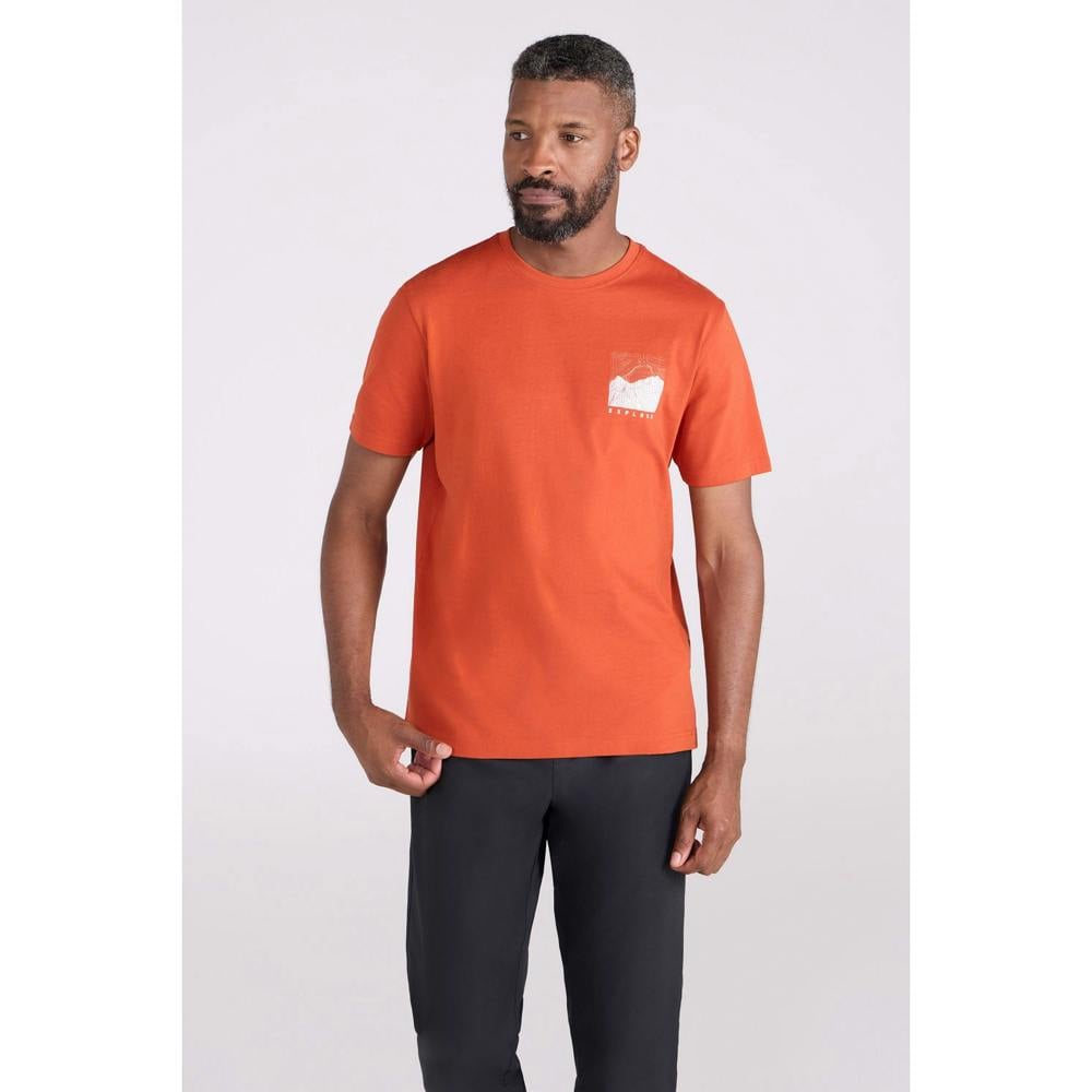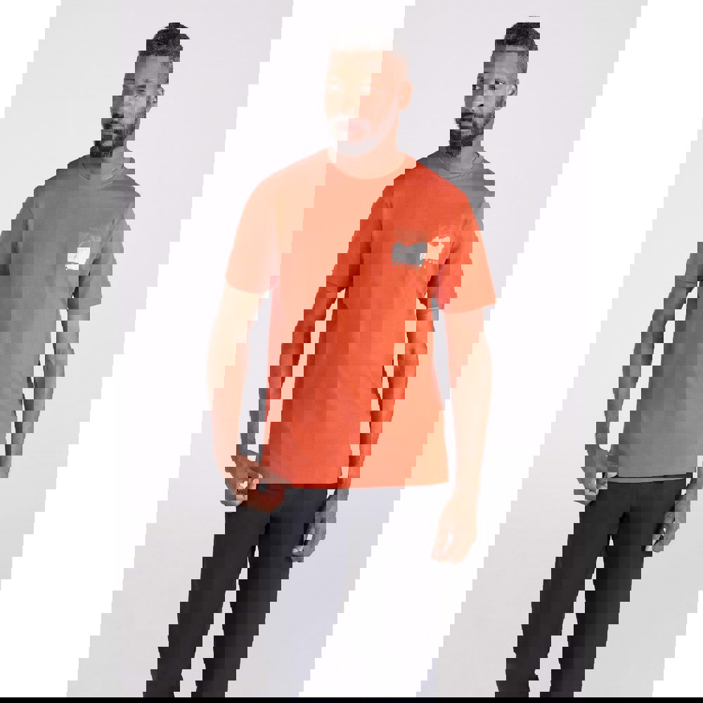 Made from 100% organic cotton, this men’s Conquer New Heights T-shirt comes in a rust colourway with a lightweight 180gsm fabric. The design combines grid and line graphics with printed text for a bold, modern look.