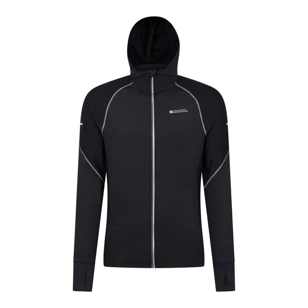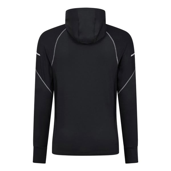 This men’s Control II running hoodie from Mountain Warehouse is finished in black with a logo design. It has a hooded neckline and long sleeves, with thumb holes for a secure feel during movement. Reflective detailing adds a practical touch for low-light conditions.