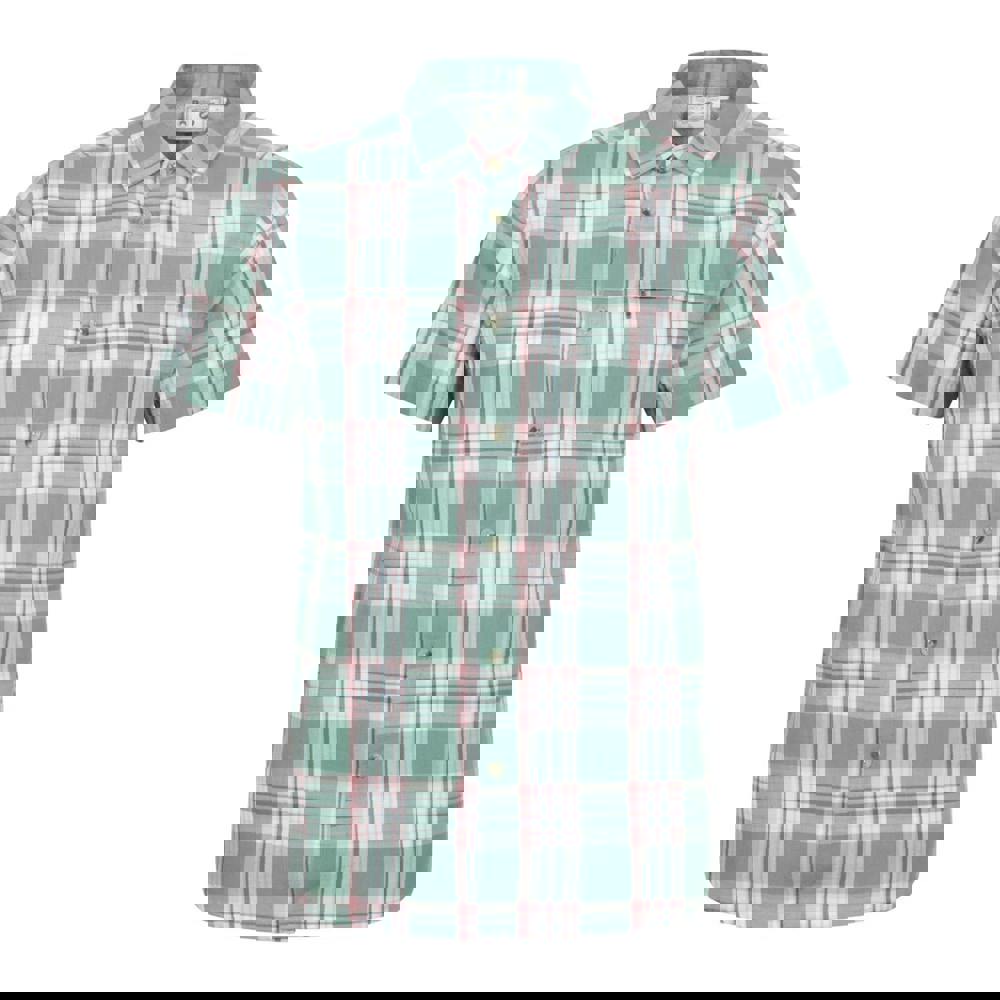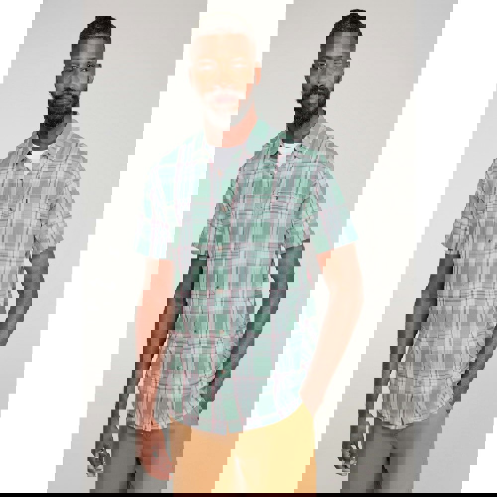 This men’s cotton shirt from Mountain Warehouse comes in a bright green checked design with a classic turn down collar. Cut with short sleeves and a button-down fastening, it offers a clean, casual look that works well for everyday wear.