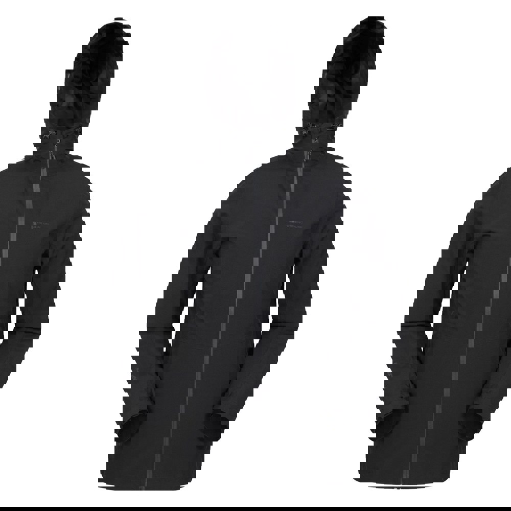 Made from 100% polyester, this men’s Covert jacket from Mountain Warehouse is a lightweight waterproof layer in black. The design includes logo and text detailing, with a hooded neckline and long sleeves for practical coverage.
