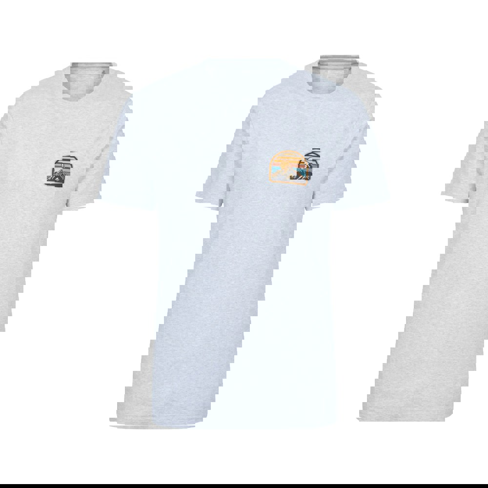 This men’s Crest Organic T-Shirt from Mountain Warehouse comes in light grey and is made from organic cotton. It has a crew neck and short sleeves, finished with a printed crest design for a clean, casual look.