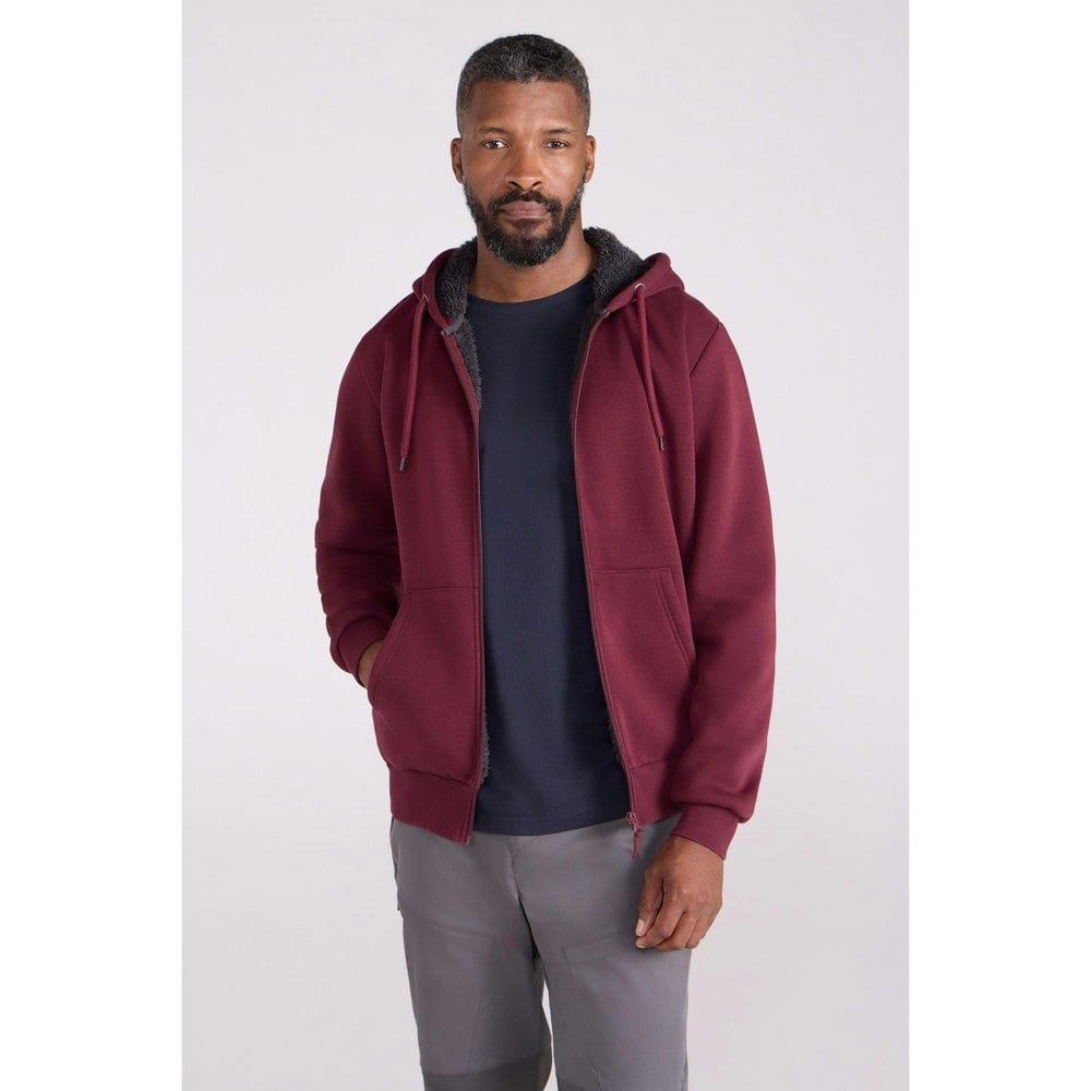 This full zip hoodie is made from a 56% cotton and 44% polyester blend, with a borg and fleece lining. The plain design is finished with a grown on hood and drawstring, keeping the look clean and practical for everyday wear.
