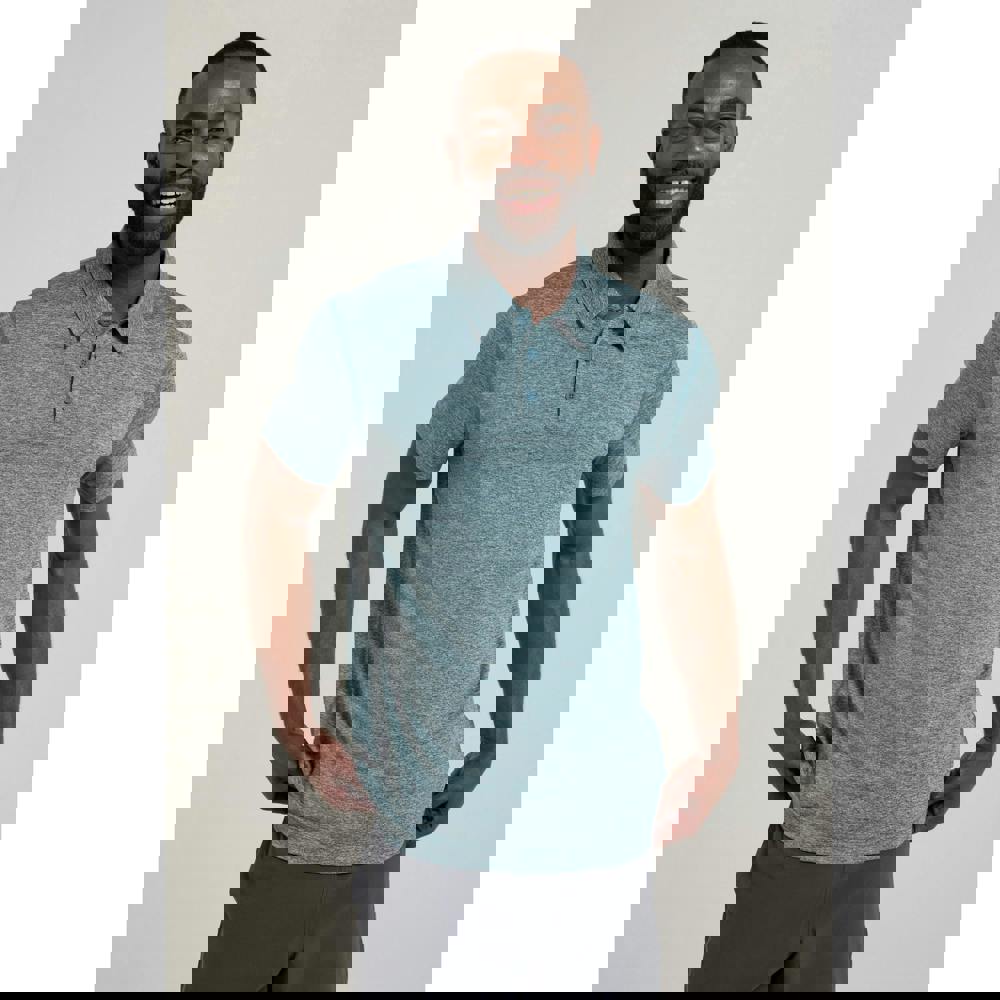 Mountain Warehouse Deuce IsoCool polo shirt in petrol, made from 92% polyester and 8% elastane. This short-sleeved style is finished with a turn down collar and a 3 button placket for a classic polo look. A logo design detail completes the front.