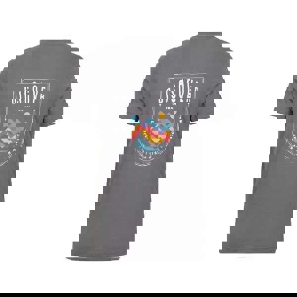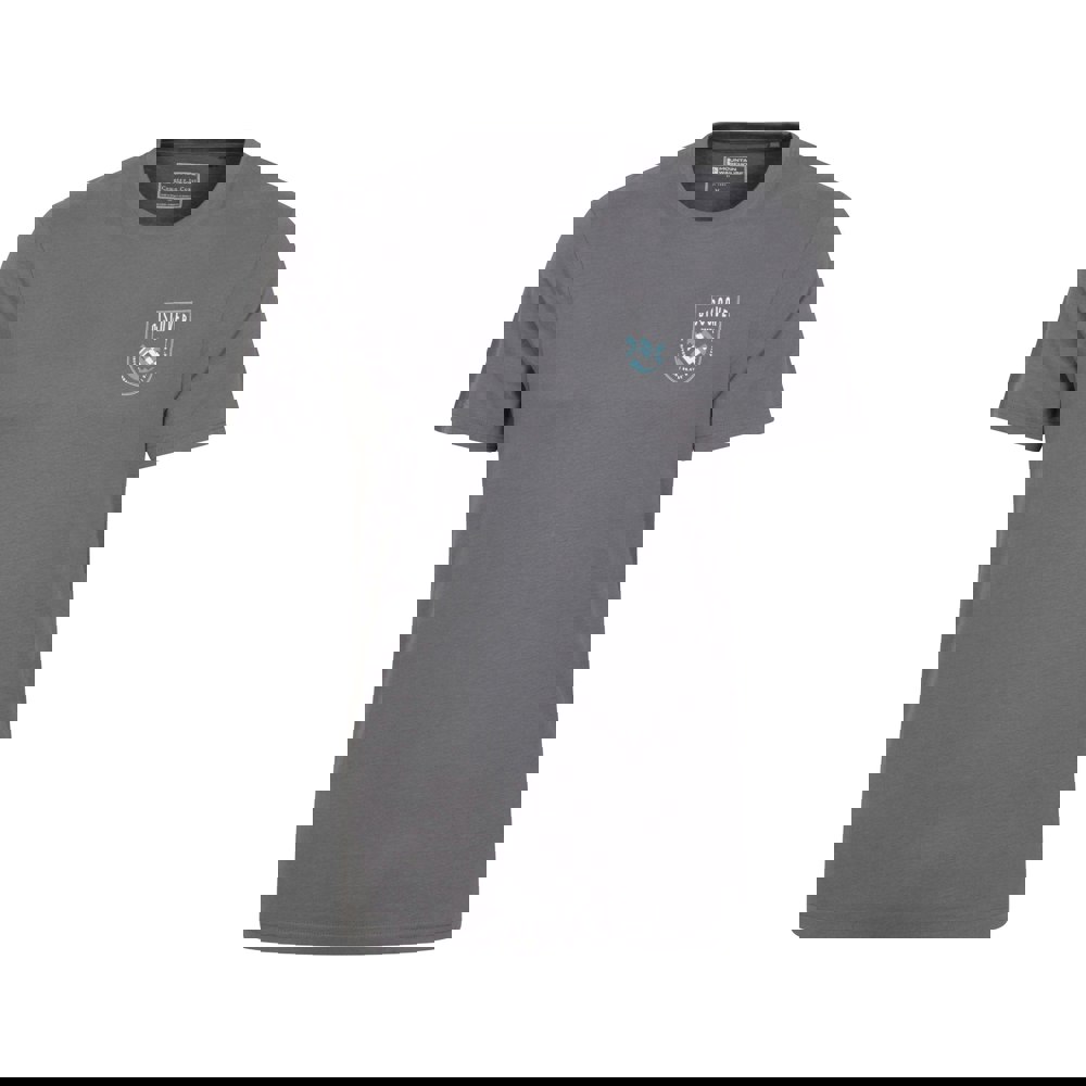 Mountain Warehouse Discover Oban cotton T-shirt in grey. Made from 100% cotton, this short-sleeved style is finished with a crew neckline and a regular fit. The design includes a mountain print with text, keeping the look casual and easy to wear.