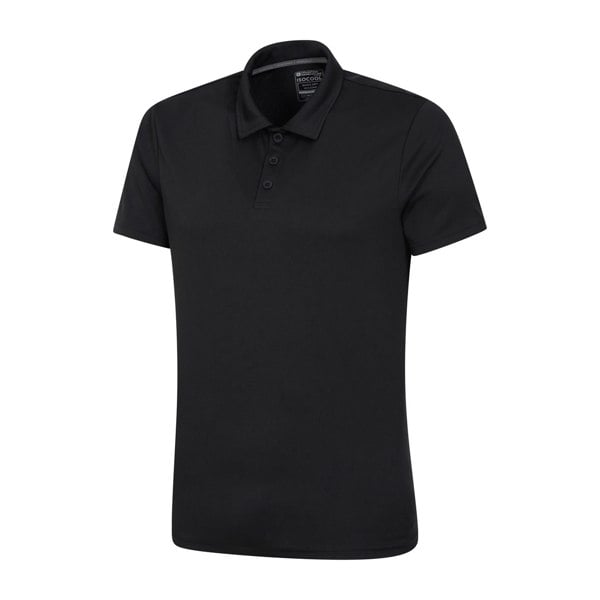 This men’s Endurance IsoCool polo shirt from Mountain Warehouse comes in black with a plain finish. It is made from 100% polyester and styled with a turn down collar and short sleeves for a classic polo shape. A button fastening and 3 button placket complete the front.