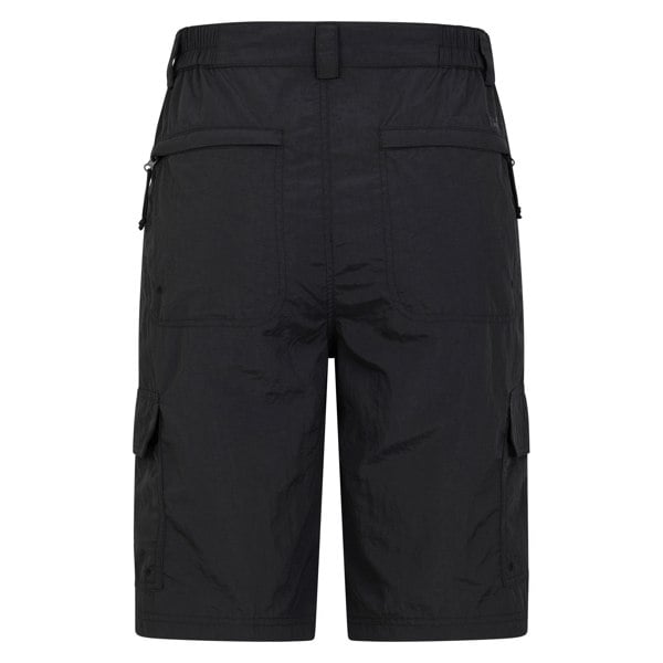 Pocket storage includes two cargo pockets, two front pockets and one side pocket with a zip closure. The fabric technology is fade resistant, lightweight, quick dry and shrink resistant.