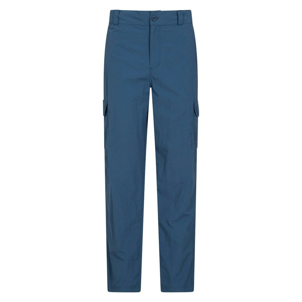 These men’s Explore trousers from Mountain Warehouse come in blue and are made from a nylon and polyester blend. The design includes a logo and a button fastening with a zip fly.