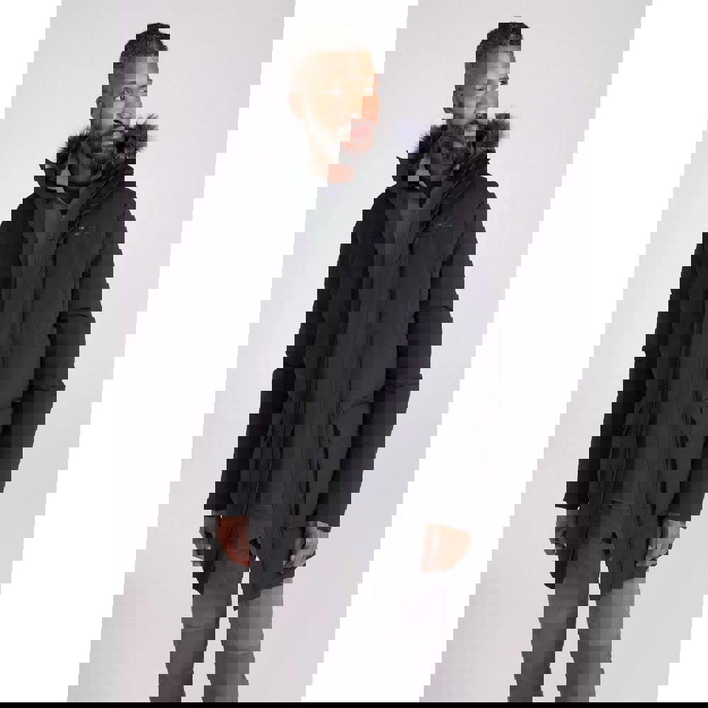 This men’s Fern parka from Mountain Warehouse is a padded, quilted style with a microfibre filling and a water-resistant finish. It is thermal tested to -50C and uses durable fabric with a DWR finish. A full zip fastening is supported by hook and loop detailing for a secure closure.