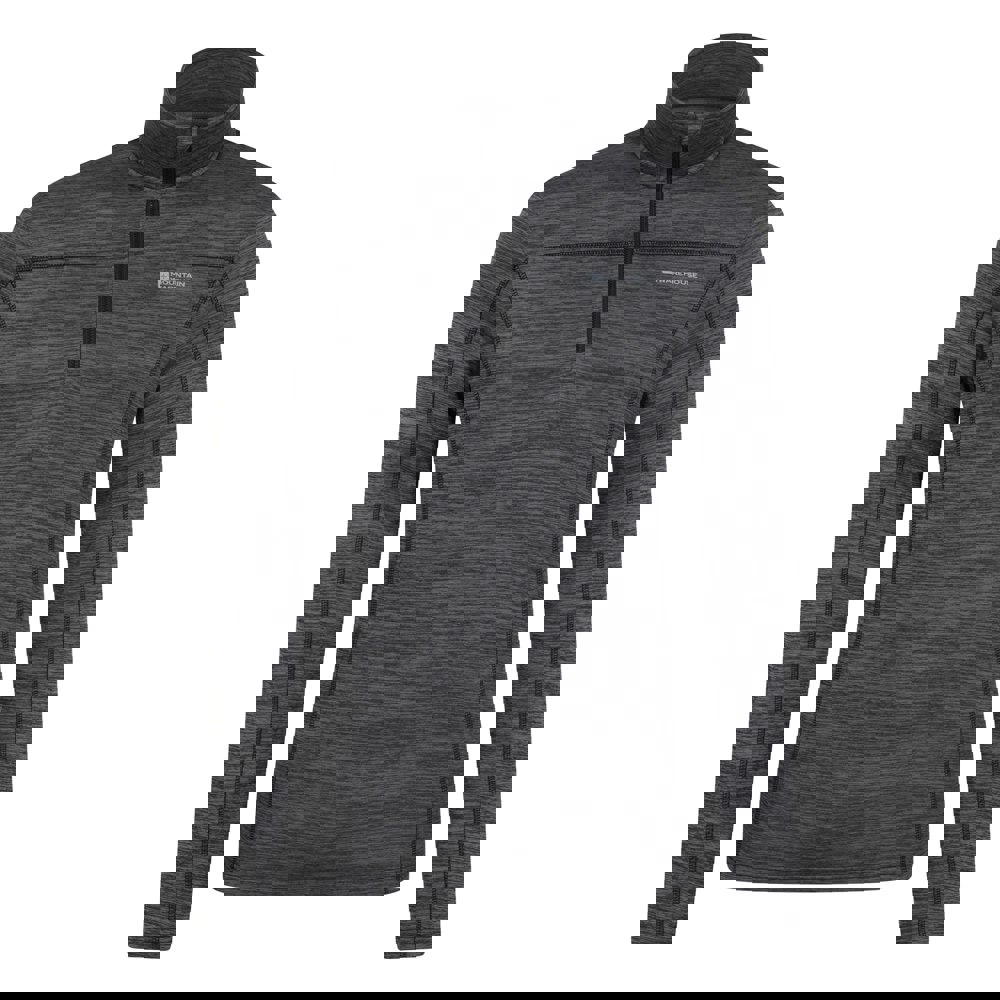 This men’s Finsbury active midlayer from Mountain Warehouse comes in dark grey with a textured finish and logo detailing. It has a high neck and a half zip fastening for a clean, practical look.