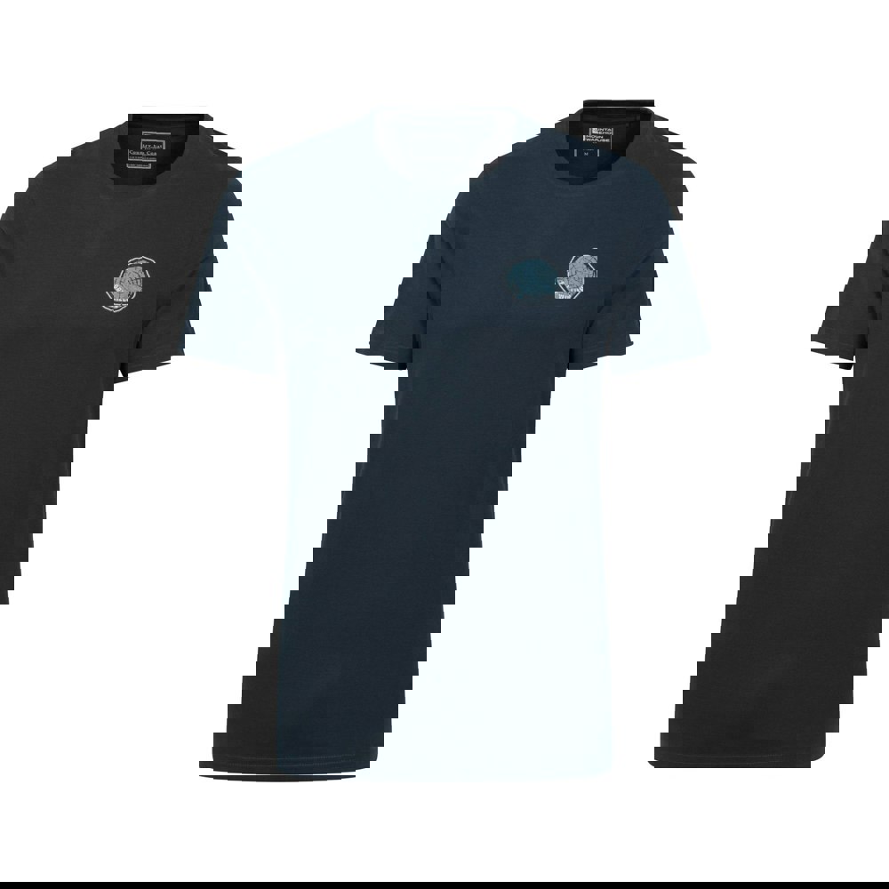 Made from 100% organic cotton, this men’s Fort William Tree Ring T-shirt from Mountain Warehouse offers a lightweight, breathable feel for everyday wear. It is finished in dark blue with a back print that combines mountain, tree ring, text and printed detailing for a distinctive look.