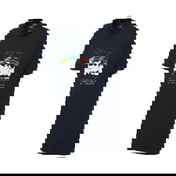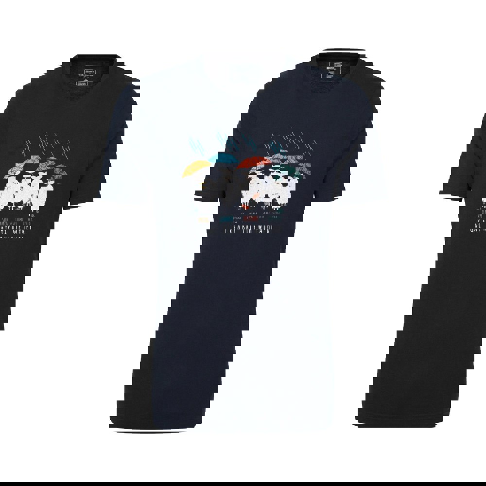 Bring a playful finish to everyday outfits with this men’s Great British Weather T-shirt in navy. Made from 100% organic cotton, it has a breathable, lightweight feel for comfortable wear. The design combines raindrop, sheep, text and umbrella motifs, finished with a classic crew neckline and short sleeves.
