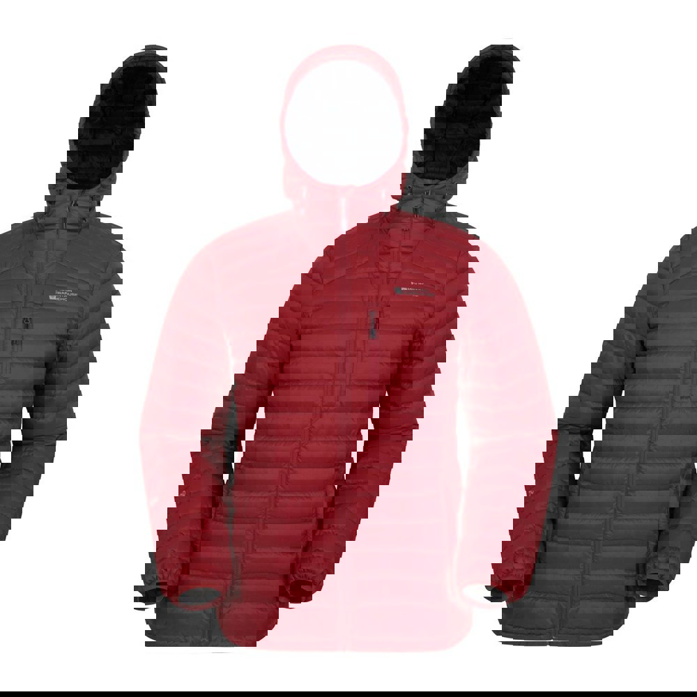 This padded jacket is made with a 100% polyamide outer and a 100% polyamide lining, finished with a soft-touch fabric handle. It is down filled with 90% grey duck down and 10% grey duck feather, with a stated filling weight of 600g. The hooded neckline includes an adjustable drawcord, and long sleeves are completed with elasticated cuffs.