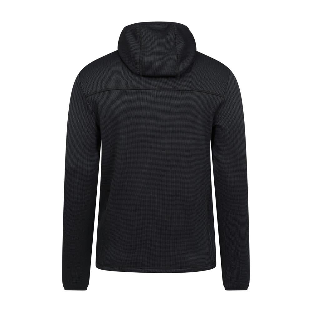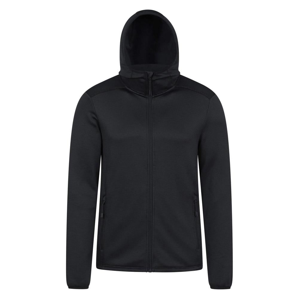 Mountain Warehouse Hike Active full zip hoodie in black, made from 96% polyester and 4% elastane. The lightweight stretch fabric has a plain finish and includes UV protection with a UPF 50+ sun rating.