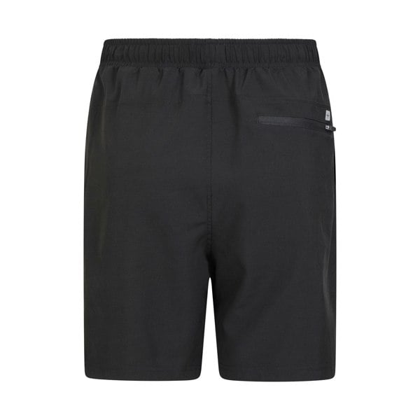 An elasticated waistband with an inner drawcord provides adjustable security. Storage is practical with two side pockets, a zip pocket and a mesh pocket, offering options for keeping small essentials close. The fabric uses moisture wicking and quick dry technology.