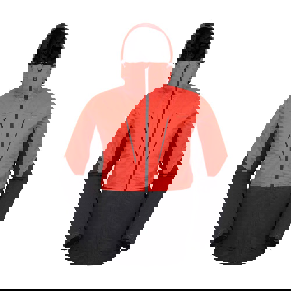 A detachable snowskirt adds practical coverage, and the grown-on hood adjusts for a secure feel. Storage is organised with two chest pockets, two side pockets and a dedicated ski pass pocket, with flap closures where stated. Hook and loop cuff straps allow a closer fit at the wrist.