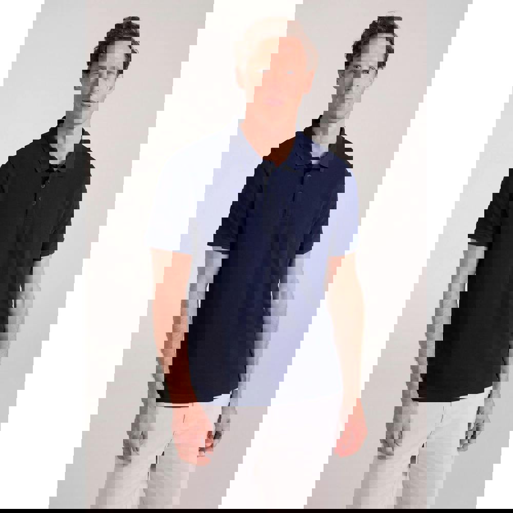 Cut for warm-weather wear, the Mountain Warehouse Lakeside II polo shirt comes in dark blue with contrast detailing for a clean, sporty finish. A collared neckline and short sleeves keep the look classic, while the three-button placket offers a neat, adjustable front. Made in a soft-touch fabric, it is breathable and lightweight for everyday comfort.