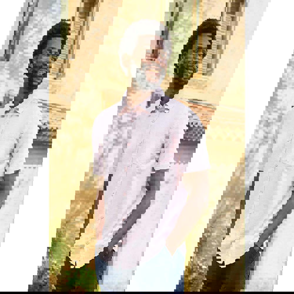 This men’s Lowe shirt is made from a linen and cotton blend with a soft-touch finish. The plain design keeps the look clean and easy to style, while the grandad neckline offers a modern alternative to a traditional collar. A button-down fastening completes the front, and a single chest pocket adds a practical detail.
