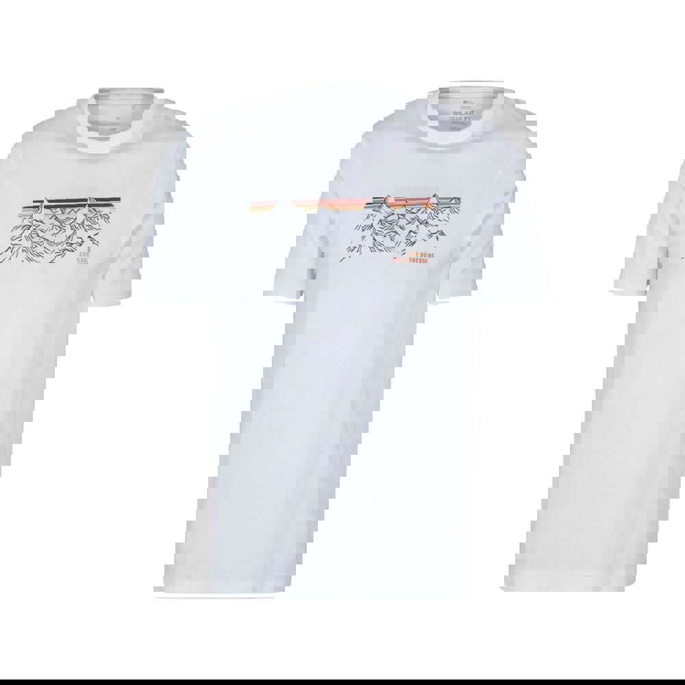 Refresh your casual wardrobe with this men’s Mountain Stripes T-shirt from Mountain Warehouse. Made from 100% organic cotton, it offers a lightweight feel for everyday wear. The design combines a graphic print with mountain and text detailing, finished in a clean white colourway.