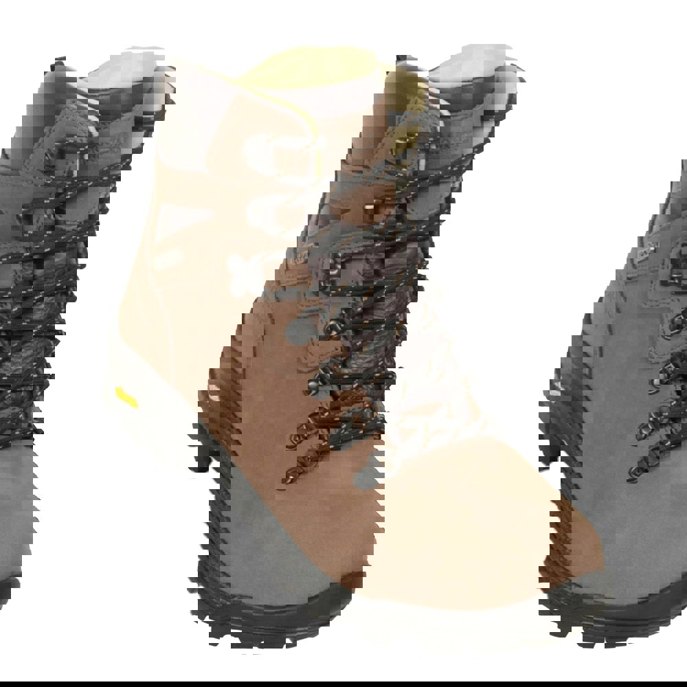 Underfoot, a cushioned EVA (Ethyl Vinyl Acetate) midsole adds comfort, while the Vibram® Grivola outsole provides a durable base. Finished in light brown with contrast detailing and logo branding, the round toe and lace-up fastening keep the look classic and secure. A block heel completes the profile.