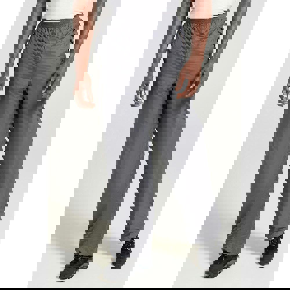 An elasticated waistline supports easy pull-on layering, while taped seams add extra protection. Two side pockets provide practical storage, and a packaway bag is included for compact carrying when not in use. The waterproof rating is 1500mm and they are suitable for light to moderate rain.