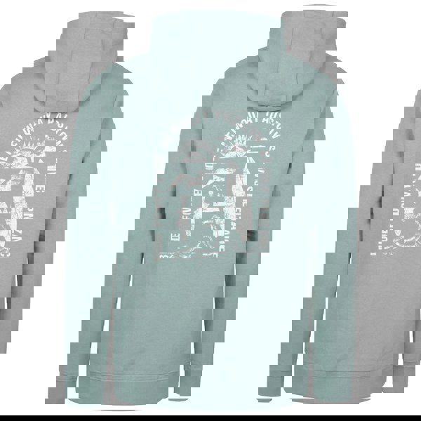 Mountain Warehouse Regional Cornwall graphic hoodie in light khaki, made from 60% cotton and 40% polyester with a trim in cotton, elastane and polyester. The design combines graphic print and text with a tidal wave motif for a distinctive finish.
