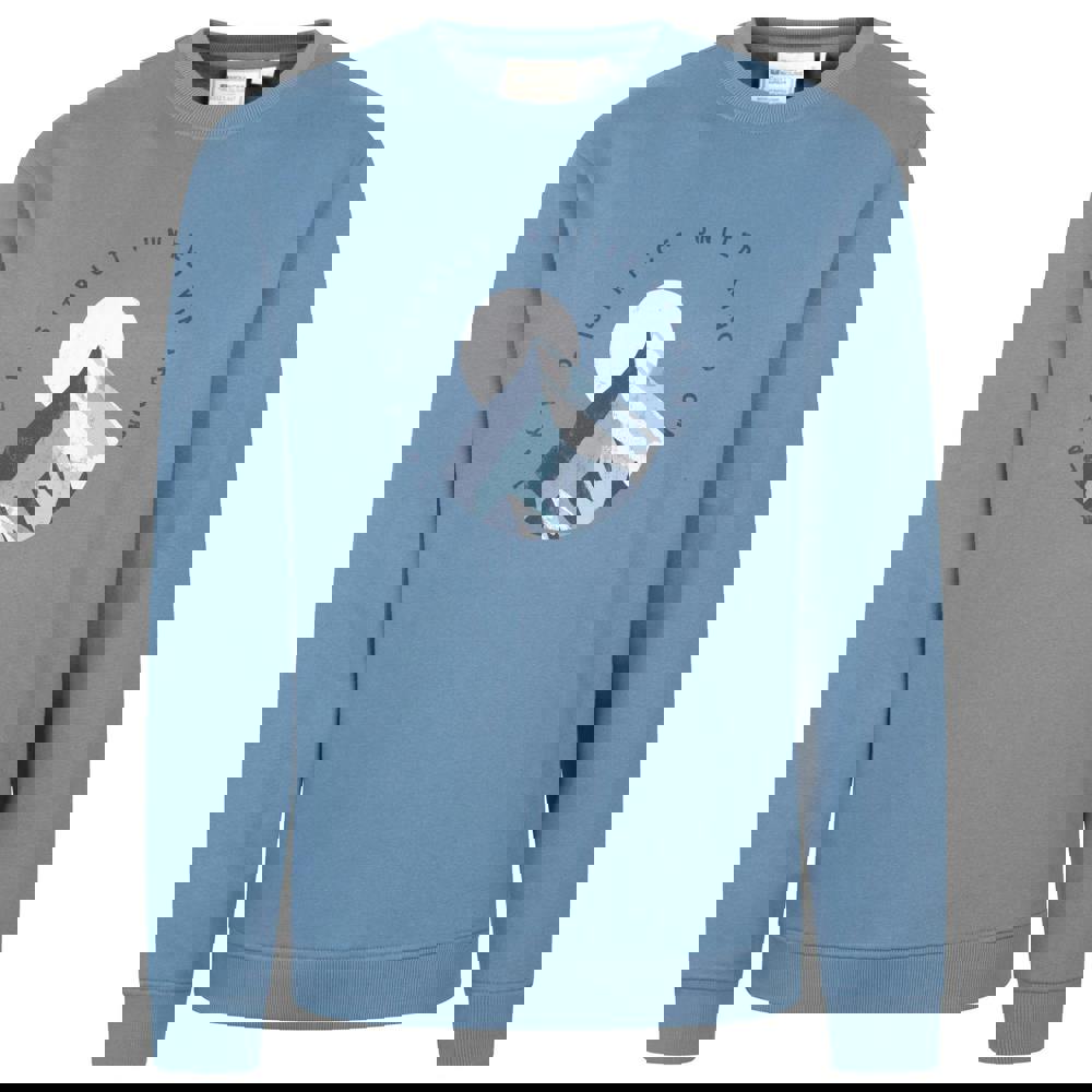 This men’s sweatshirt from Mountain Warehouse comes in blue with a printed design featuring a mountain, sun and text. Made from a cotton and polyester blend, it has a soft, lightweight and breathable fabric finish. The crew neck and long sleeves create a classic sweatshirt shape, while elasticated cuffs and hem keep the fit neat.