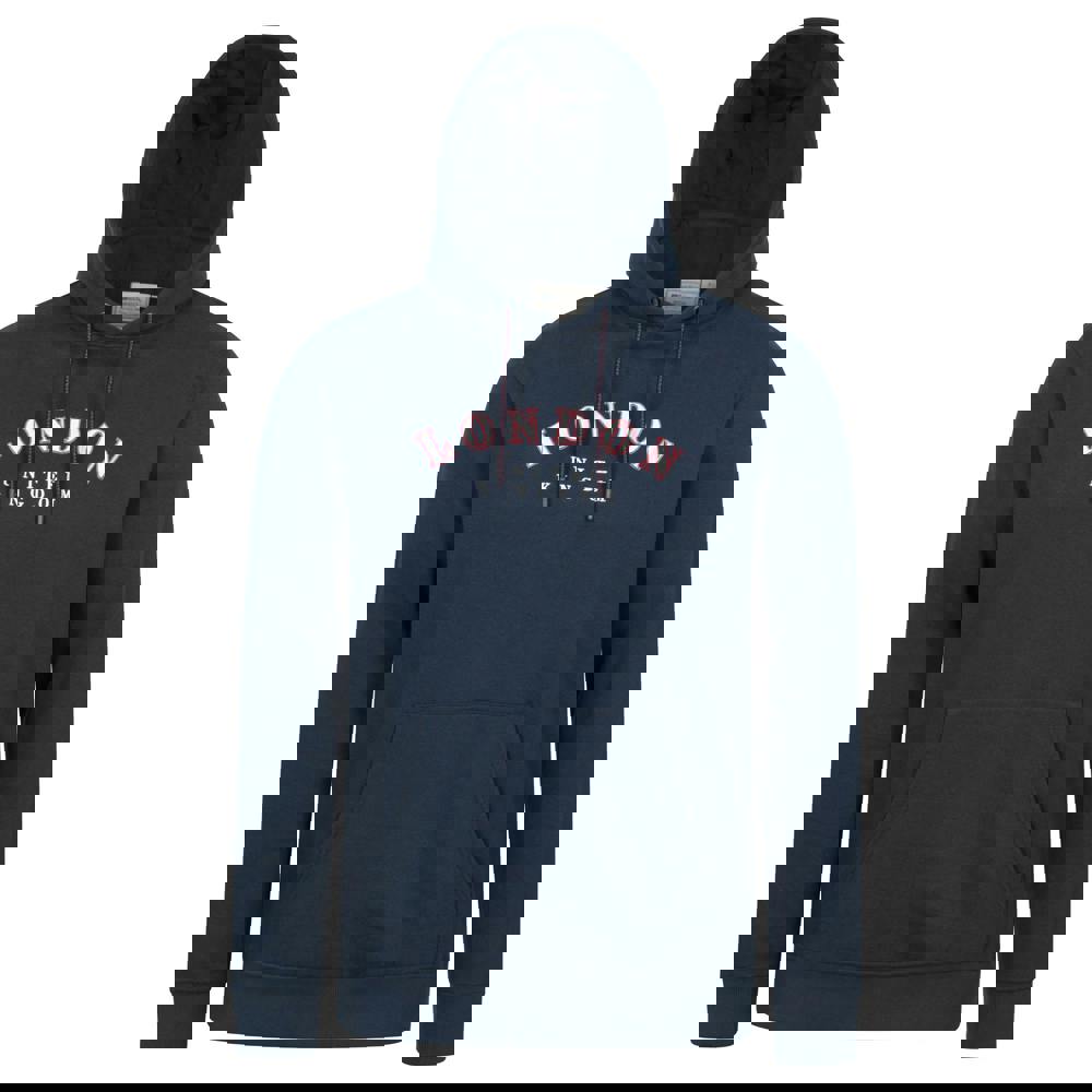 This men’s hoodie is made from a cotton and polyester blend and finished in navy with a text graphic design. It has a hooded neckline with a sew-on hood and an adjustable drawcord. Long sleeves, plus elasticated cuffs and hem, give a neat outline for everyday wear.