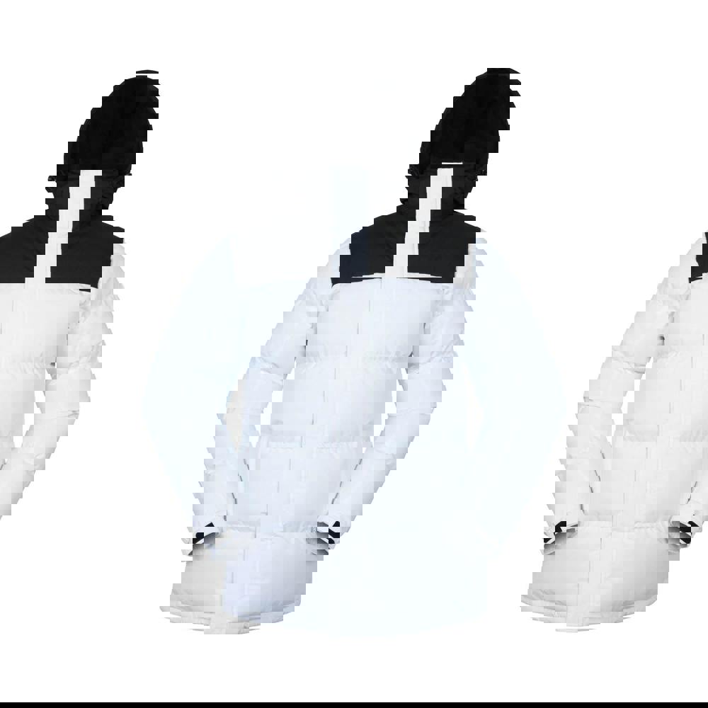 This men’s snow padded jacket is made with a 100% polyester outer and microfibre filling. It has a monochrome look with contrast detailing and a logo. A DWR finish and water-resistant fabric technology are included, alongside heat retention and padding for protection against cold up to -40°C.