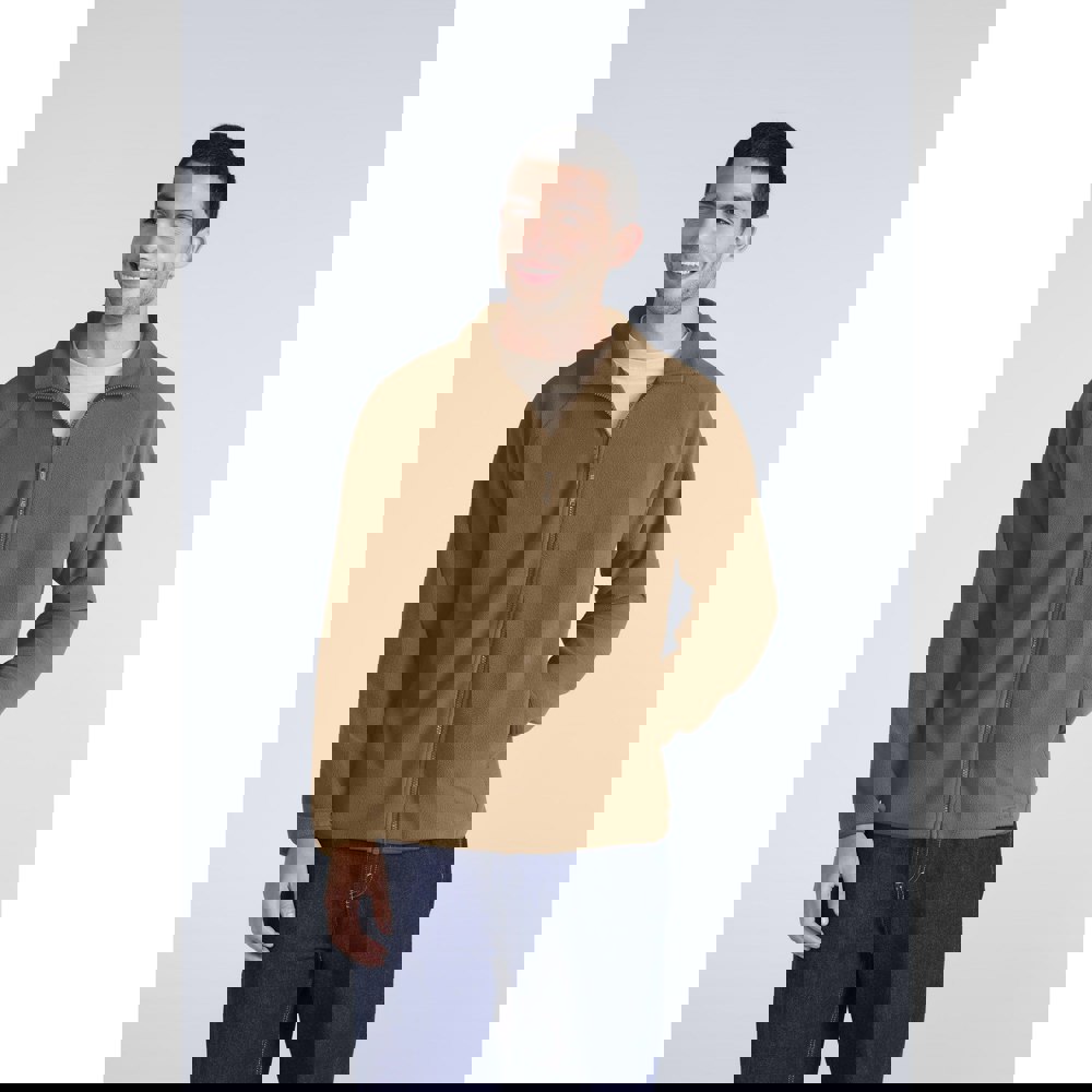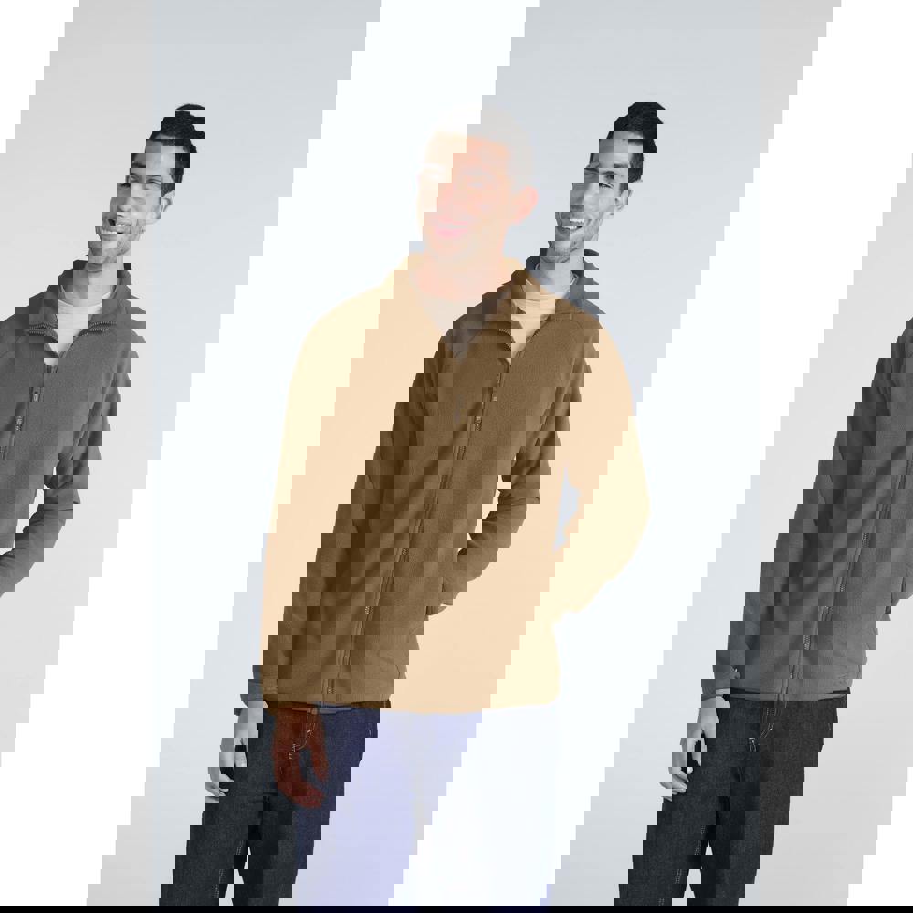 This men’s Stockholm fleece jacket from Mountain Warehouse is made from 100% polyester with a soft-touch fleece fabric. It has a plain finish with logo detailing and a standing collar for a clean, structured look.