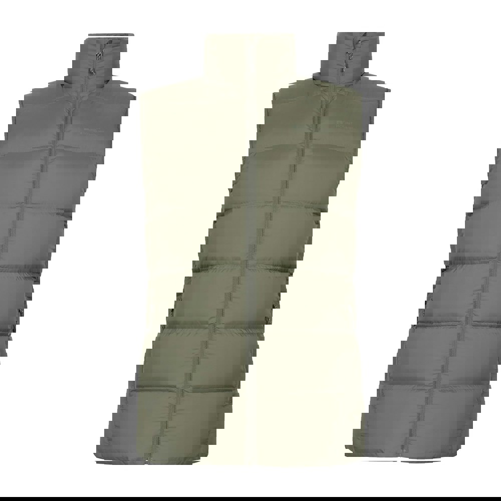 This men’s Stratus down packable gilet from Mountain Warehouse comes in khaki green with a logo design. Made from 100% polyamide, it is insulated and thermal tested to -30c, with a water resistant finish for added practicality.