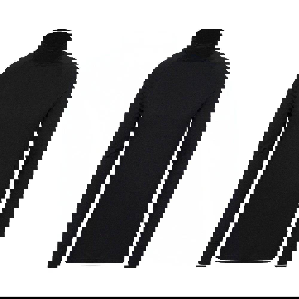 Made from merino wool, this men’s thermal top is finished in black with a logo design. It has a funnel neckline and long sleeves for a clean, practical silhouette suited to layering.