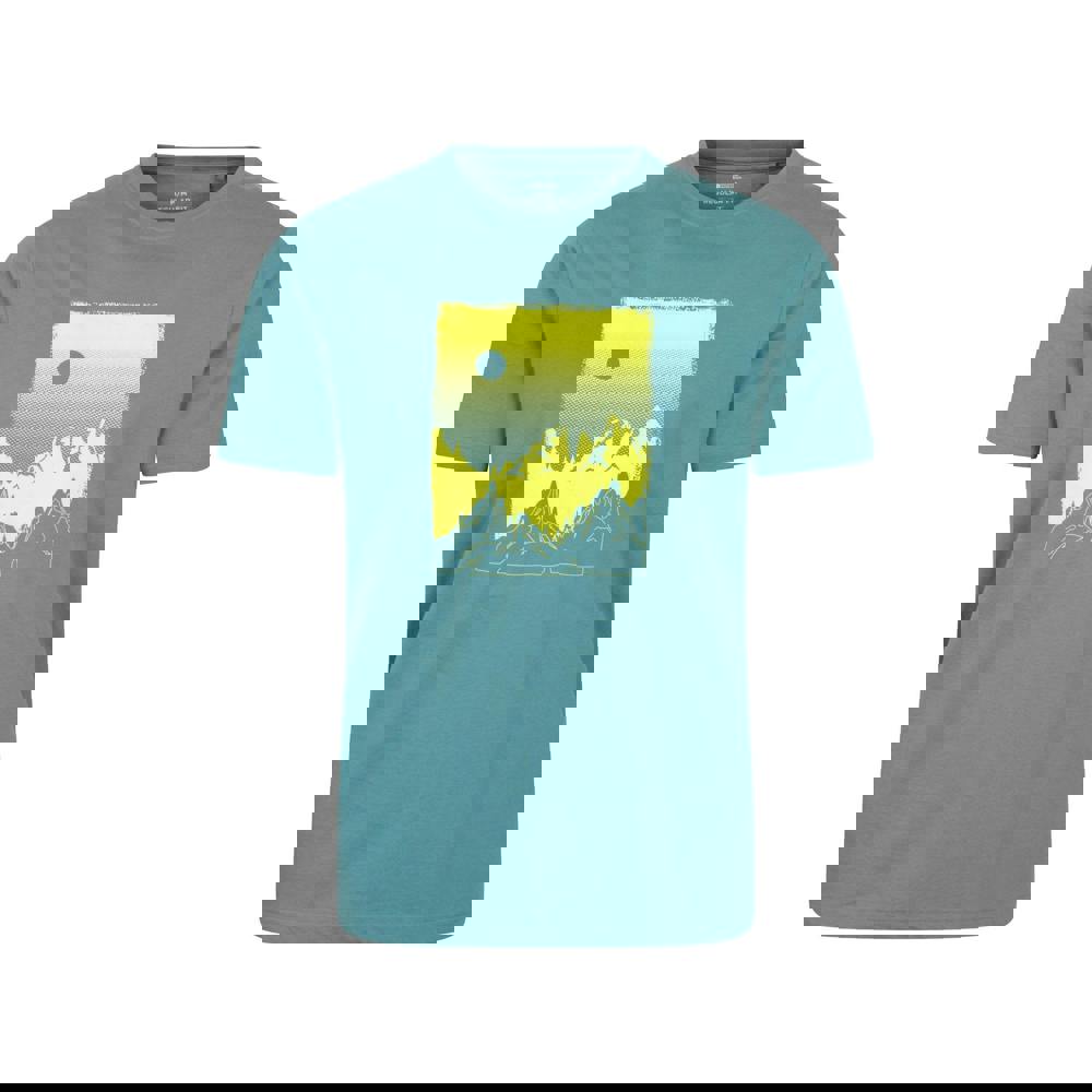 This men’s Sunrise organic T-shirt from Mountain Warehouse is made from 100% organic cotton with a soft-touch feel. It comes in a petrol colourway with a printed sunrise design and a classic crew neckline. Finished with short sleeves, it suits everyday casual wear on warmer days.