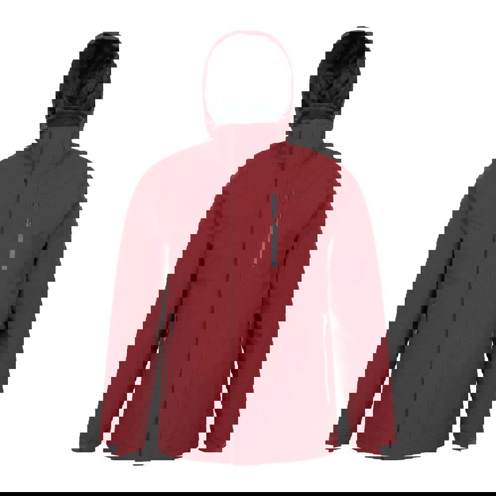 Mountain Warehouse Sycamore 3 in 1 waterproof jacket in rust with a detachable inner jacket for adaptable wear. The outer is made from 100% polyamide with a 100% polyester lining, finished with taped seams and a hooded neckline. A detachable hood and touch fastening details add practical adjustability, while the full zip front provides straightforward fastening.