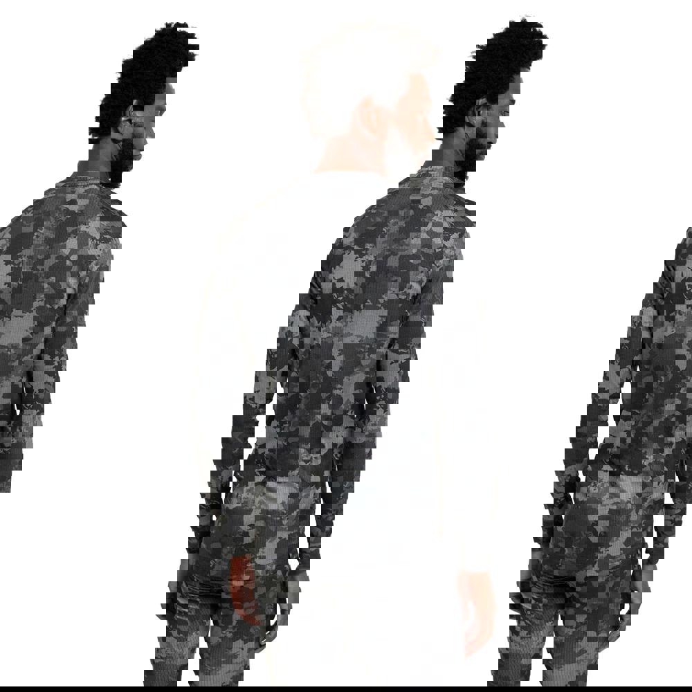 This men’s Talus thermal top from Mountain Warehouse comes in a green camouflage design with a crew neckline and long sleeves. Made from 100% polyester, it is built for active wear and layering in cooler conditions.
