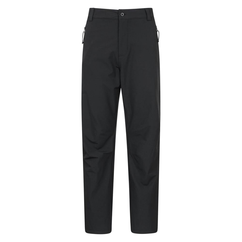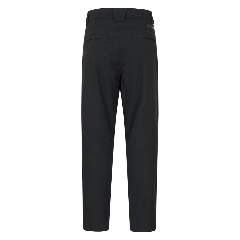 These men’s thermal fleece winter trousers come in black with a plain design and a stretch fabric. They fasten with a button and zip fly, with a pull-on style for easy wear. The waist is belted and finished with a button detail.