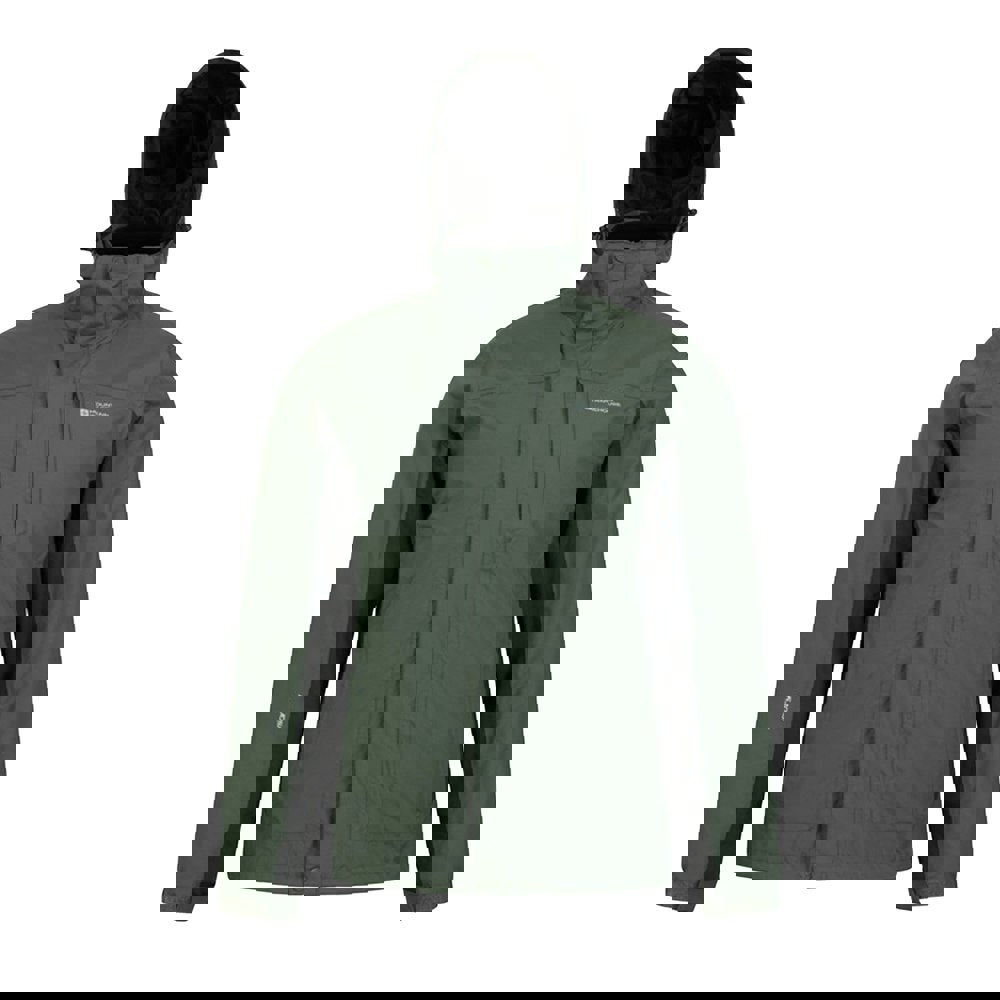 This khaki 3 in 1 jacket combines a waterproof outer with a detachable fleece layer for adaptable wear. The design includes logo and text detailing, with a hooded neckline and long sleeves. An adjustable cuff helps refine the fit, while taped seams and a 2000mm waterproof rating provide added protection in wet conditions.
