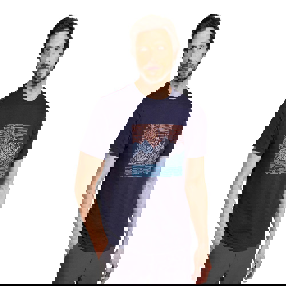 This men’s T-shirt from Mountain Warehouse comes in dark blue with a printed sun and tidal wave design. Made from organic cotton with added elastane, it offers a lightweight feel for everyday wear.