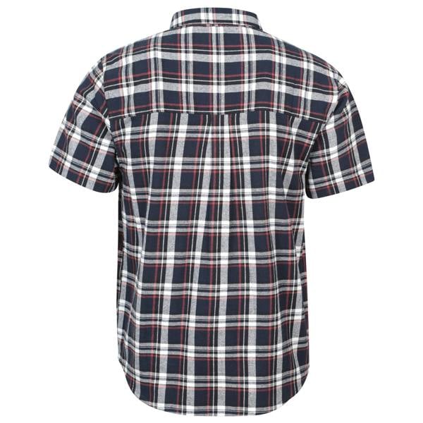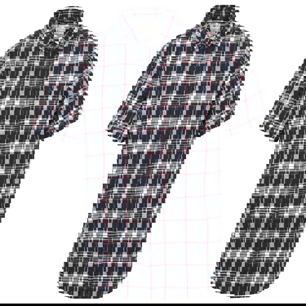 This short-sleeved flannel shirt is made from 100% cotton with a soft-touch finish. It comes in a blue checked design and fastens with buttons for a clean, classic look. A turn-down collar and single chest pocket complete the simple, practical styling, making it suitable for everyday wear.