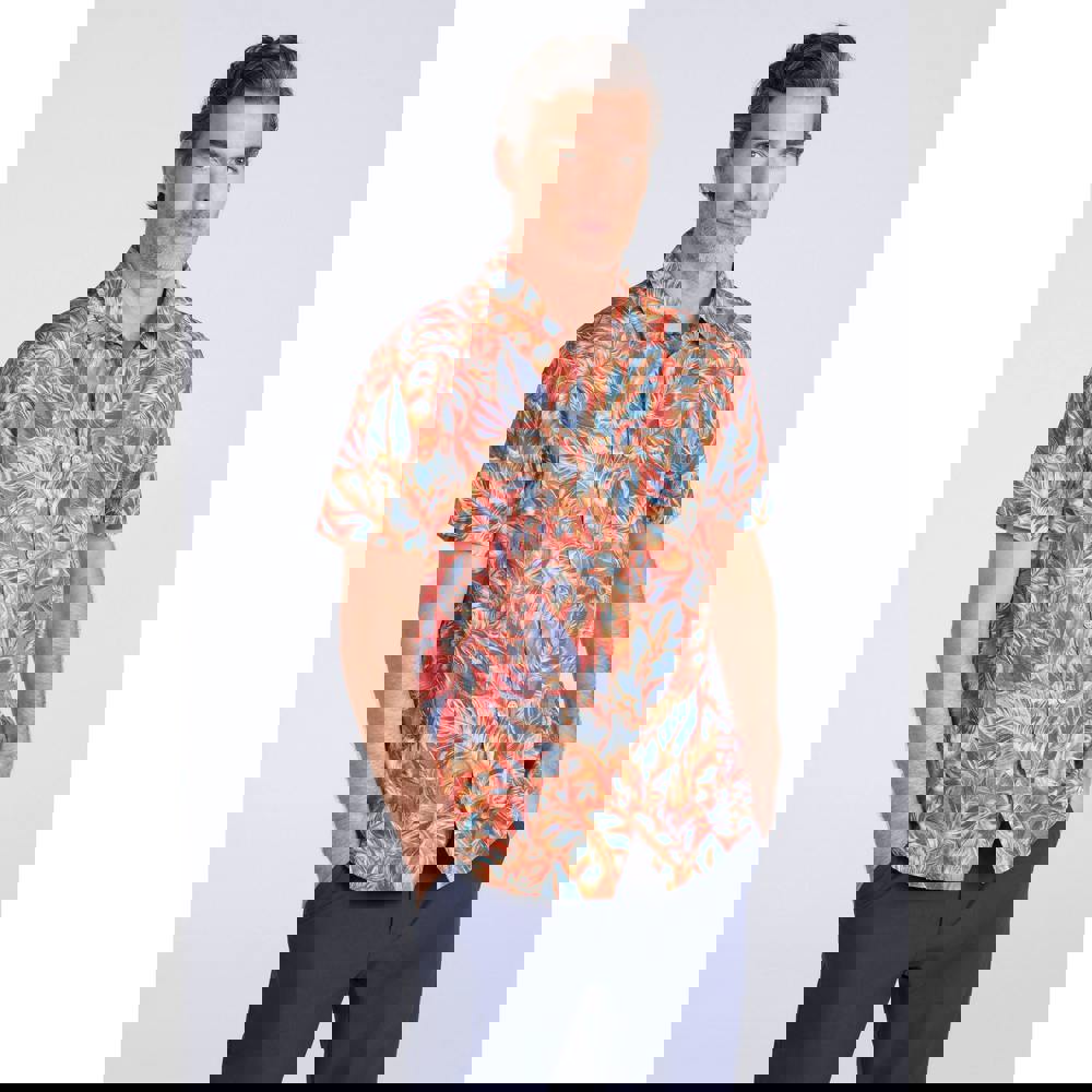Cut from 100% cotton, the Mountain Warehouse Tropical Leaves short-sleeved shirt brings a bold printed look to warm-weather dressing. The bright orange base is set with a flowers and leaves design, while the lightweight feel keeps it easy to wear throughout the day.