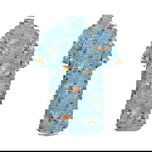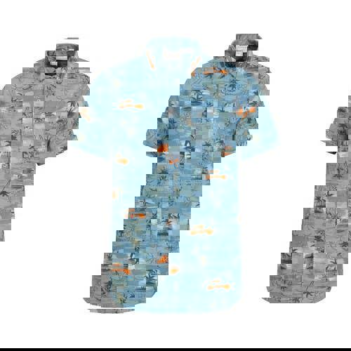 Bring a bold pattern into warm-weather dressing with this men’s tropical shirt in bright blue. Made from 100% cotton, it has an all-over tropical print and a loose fit for an easy, relaxed feel. The short-sleeved cut and turn down collar keep the look classic, while the button-down fastening gives a neat finish.