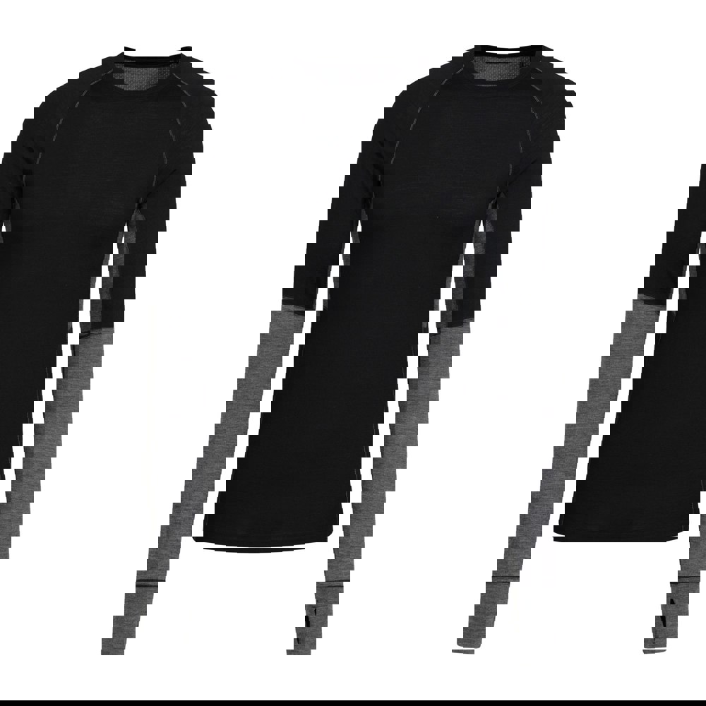 This men’s base layer top from Mountain Warehouse is made from a merino wool and polyester blend, with a midweight mesh fabric. It has a round neck, long sleeves and contrast sleeves for a defined look. Thumb loops add a practical finishing detail.