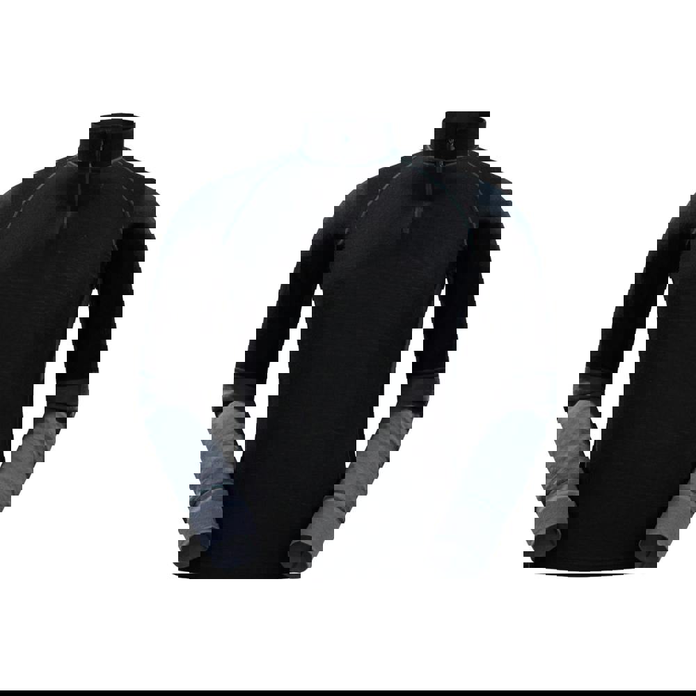 This men’s base layer top from Mountain Warehouse is made from a merino wool and polyester blend, with a midweight mesh fabric construction. It has long sleeves with contrast sleeves for a defined look, and a standing collar with a zip neck for adjustable coverage.