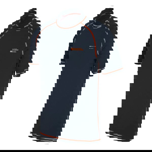 This men’s rash top from Mountain Warehouse is made from a nylon and elastane blend with stretch fabric for comfortable movement. It has a high neck and short sleeves, with flat seams for a smooth finish.